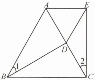 4. 如图,$D$ 为等边三角形 $ABC$ 的边 $AC$ 上的一点,$\angle 1= \angle 2$,$BD = CE$. 求证:$\triangle DAE$ 为等边三角形.