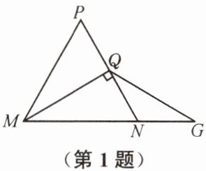 1. 如图,在$\triangle MNP$ 中,$\angle P = 60^{\circ}$,$MN = NP$,$MQ\perp PN$,垂足为 $Q$,延长 $MN$ 至点 $G$,使 $NG = NQ$. 若$\triangle MNP$ 的周长为 $12$,$MQ = a$,则$\triangle MGQ$ 的周长为(