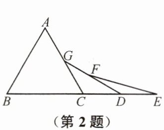 2. 如图,$\triangle ABC$ 是等边三角形,点 $B$,$C$,$D$,$E$ 在同一条直线上,若 $CG = CD$,$DF = DE$,则$\angle E= $