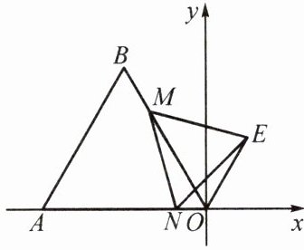 (2)如图,$M$,$N$ 分别为边 $OB$,$OA$ 上的动点,以 $MN$ 为边在 $x$ 轴上方作等边三角形 $MNE$,连接 $OE$. 当$\angle EMO = 45^{\circ}$ 时,求$\angle MEO$ 的度数.