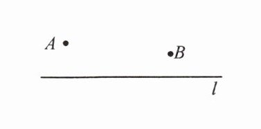 1. 如图,作出点 $ A $ 关于直线 $ l $ 的对称点 $ A' $。
