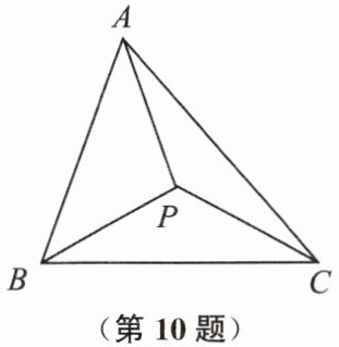 10. 如图,$ P $ 为 $ \triangle ABC $ 三边垂直平分线的交点,若 $ \angle PAC = 22^{\circ} $,$ \angle PCB = 33^{\circ} $,则 $ \angle PAB $ 的度数为(