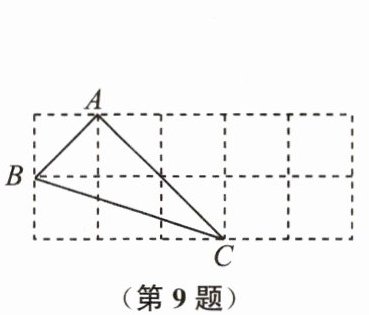 9. 如图,在正方形网格中与 $ \triangle ABC $ 成轴对称的格点三角形最多有(