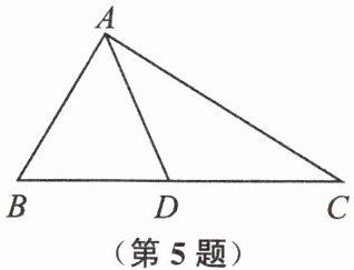 5. 如图,在△ABC中,AD是边BC上的中线,△ADC的周长比△ABD的周长多3,AB与AC的和为13,则AC =
