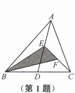 1. 如图,在△ABC中,D,E,F分别为BC,AD,CE的中点,且$S△ABC = 4 cm^2,$则S阴影 =