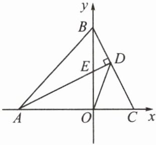 21. 如图,在平面直角坐标系中,$ A(-5,0) $,$ B(0,5) $,$ C $ 为 $ x $ 轴正半轴上一动点,过点 $ A $ 作 $ AD \perp BC $ 交 $ y $ 轴于点 $ E $.