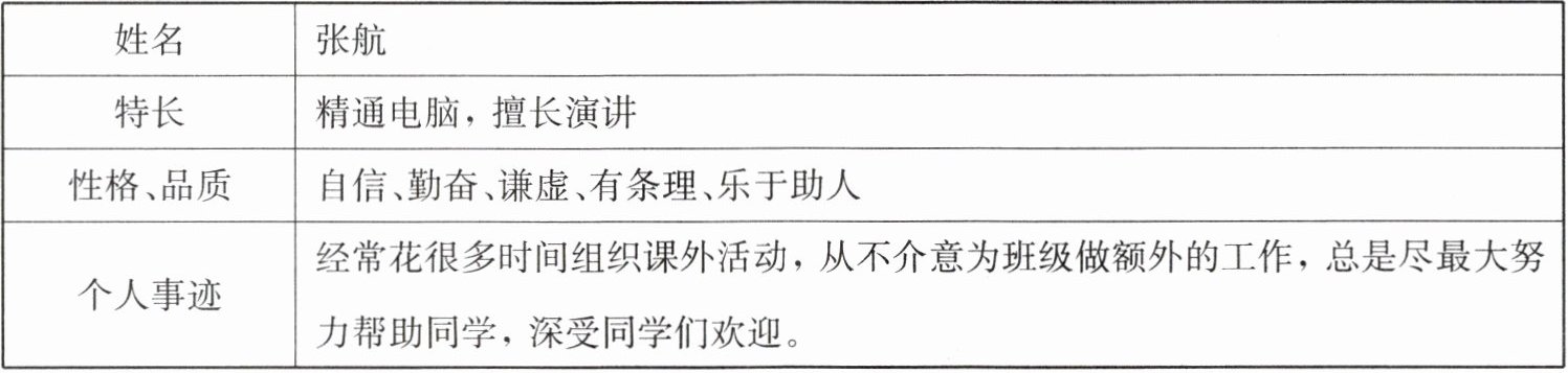 I think he has some strong qualities for this position. Zhang Hang is confident and good at giving speeches. He also does well in computers. He is hard-working,modest and organized. He often spends lots of time organizing after-school activities. He is very helpful too. He never minds doing extra work for our class. Instead,he always tries his best to help other students. Therefore,he is very popular with us. I think Zhang Hang is the most suitable person to be our monitor.