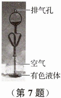 7. 为庆祝妈妈的生日,小明购买了一个上端开口的爱心“温度计”作为礼物。当用手包裹住底端玻璃泡时,玻璃泡温度上升,内部气体受热膨胀,使管中液体迅速上升,形成一个爱心形状。下列说法正确的是(