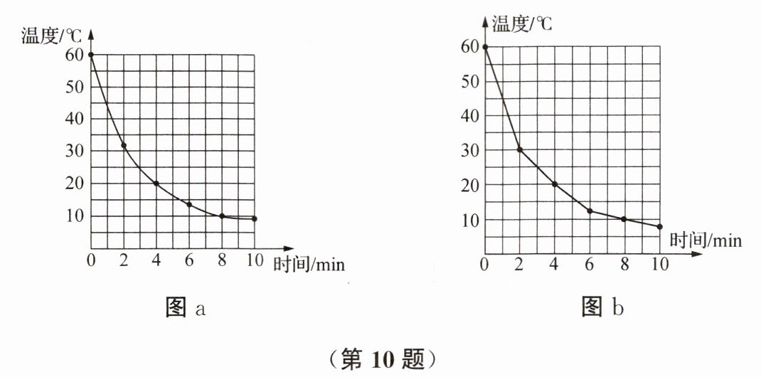 10. 一杯热水的初温为60℃,在其自然冷却过程中,每隔两分钟测量一次水温,描点作出温度-时间图像。正确的描点应该是图a所示的光滑的曲线,而不是图b所示的折线。请说出这样描点的理由: