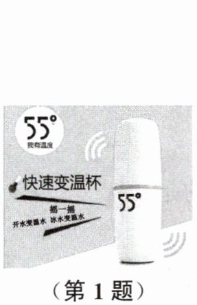 1. 如图所示为关于“55℃”水杯的图片。将沸水倒入这种杯中摇一摇,便可使水温快速变为55℃并在一定时间内保持温度不变,这是因为杯的内壁和外壁间贮存了一种颗粒,这种颗粒是