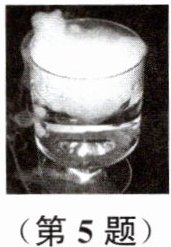 5. 如图所示,将干冰(固态二氧化碳)放到装有水的烧杯中,能看到烧杯中的水迅速“沸腾”,有大量气泡升起,同时烧杯上方“云雾缭绕”,关于这一现象,下列说法正确的是(