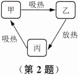 2. 固态、液态和气态是物质常见的三种状态,某物质通过放热、吸热在甲、乙、丙三种物态之间转化,如图所示,则丙为