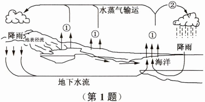 1. 如图所示是“水循环示意图”,图中的①处发生的物态变化是