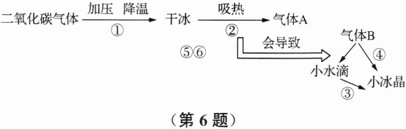 6. 干冰具有很好的制冷作用,可用来人工降水,如图所示是制取干冰,在高空播撒,形成降水的过程。