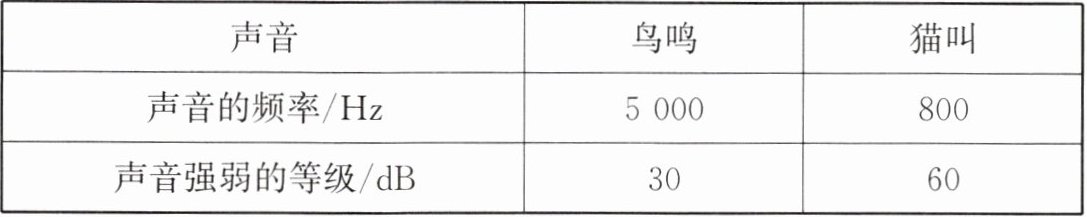 5. 监测器测得某次鸟鸣和猫叫的声音信息如下表,则(