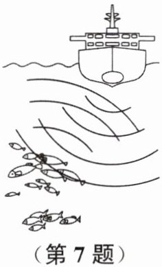 7. 电影《冰岛沉船》描述的是1912年一艘名叫“泰坦尼克号”的大海船,因为跟冰山相撞而沉没的悲剧。为了避免悲剧的重演,科学家受蝙蝠利用超声导航的启示,发明了一种利用超声工作的装置(如图所示)。利用它能较早地发现冰山或暗礁的存在,还可以探测海底鱼群、潜艇的位置。