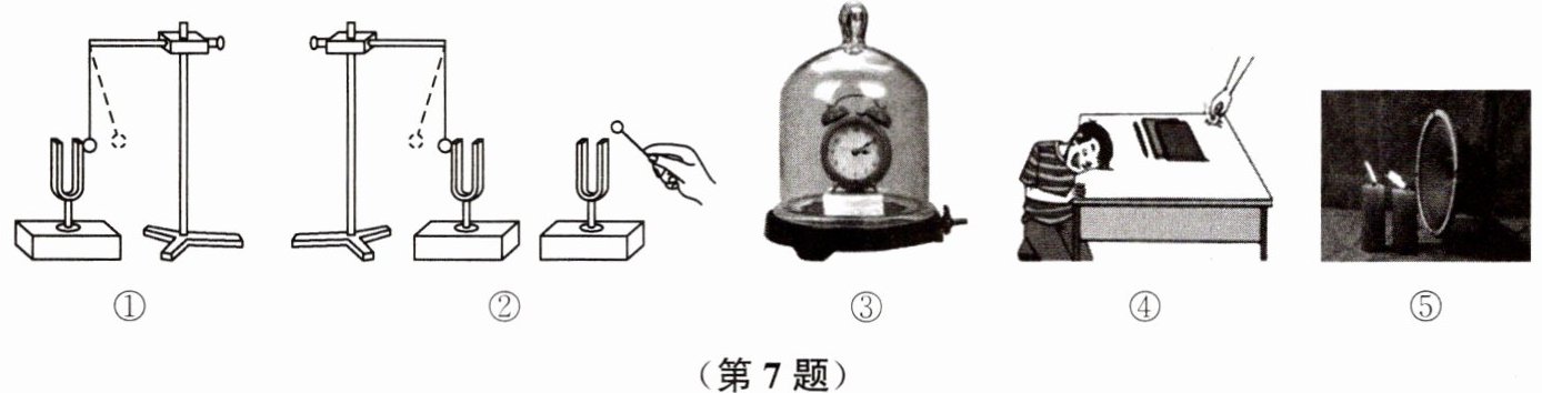 (5)如图⑤所示,将点燃的蜡烛放在扬声器的前方,可以看到烛焰随着音乐的节奏晃动,说明声音可以传递