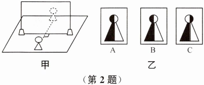 2. 小红同学利用如图甲所示的实验装置“探究平面镜成像的特点”。如图乙所示,选三只大小相同的棋子,棋子A放在玻璃板前,将棋子