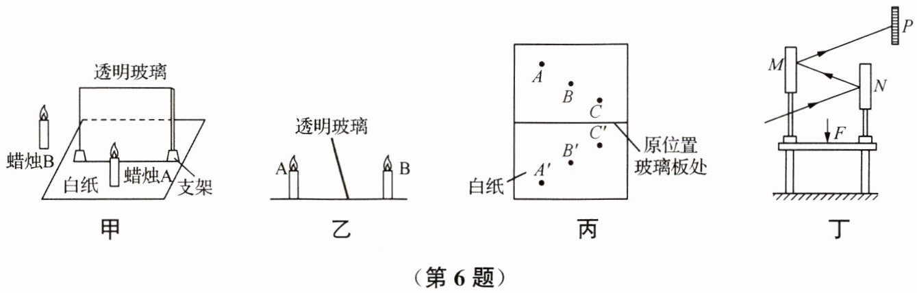 6. 如图甲所示,是小明在水平桌面上探究“平面镜成像的特点”时的实验装置。