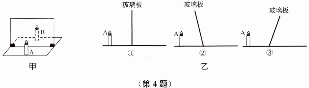 4. 如图所示,小俊用图甲所示的装置探究平面镜成像的特点。在薄玻璃板前点燃了蜡烛A,下列有关说法正确的是(