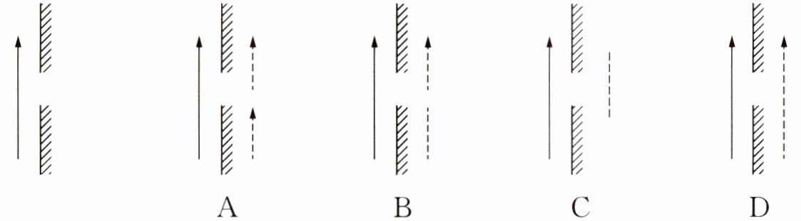 5. 两块完全相同的平面镜上、下挂在竖直的墙壁上,两平面镜间有一定的距离,一物体放在平面镜前,如图所示,则经过两块平面镜成像后,物体的像可能是选项中的(