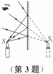 3. 如图所示,眼睛看到平面镜所成的像不是实际光
