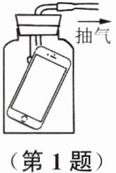 1. 如图所示,小明将正在发声的手机悬挂在广口瓶内,用抽气筒逐渐抽出其中的空气,小明听到手机的声音越来越小;再让空气逐渐进入广口瓶,听到手机的声音越来越大。根据实验现象,再结合科学方法的运用,可以得出“