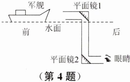 4. 如图所示是潜望镜的结构示意图,其中两块平面镜均相对于水平面倾斜45°。潜望镜是利用