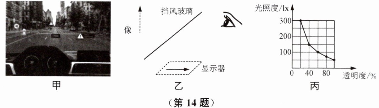 车窗所采用的“智能玻璃”具有单向透光功能,使用时反射面必须是迎光面,就能从车内看到车外明亮的景物,从车外看不见较暗的车内景象。这种玻璃还能根据车外光照度自动调节透明度(透明度是指车内光照度与车外光照度的比值),实现车内的光照度为一个适宜的定值。经测算车外光照度和玻璃的透明度成反比关系,其图像如图丙所示。