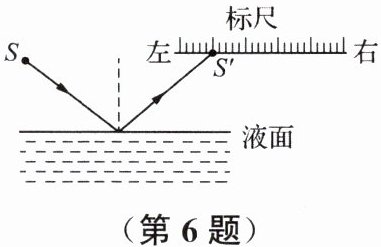 6. 如图所示是一种液面升降监测装置原理图。点光源S发出的一束激光与水平液面保持成40°夹角射向平静的液面且方向不变,下列说法正确的是 (