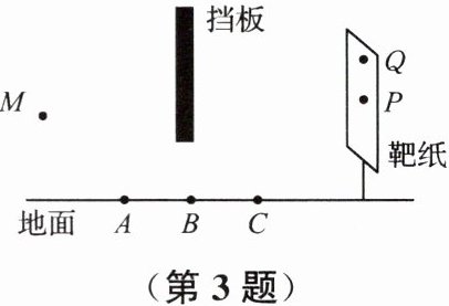 3. 如图所示为“激光打靶”活动装置,从M点朝地面射出一束激光,想要命中靶心P点,可以在地面