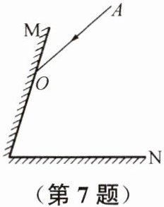 7. 如图所示,两块平面镜相交成60°,一束光线AO射到平面镜M上,要使最后反射回去的光线与AO重合,但方向与AO相反,那么光线AO与平面镜M的夹角应是 (