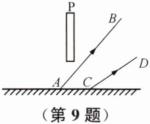9. 如图所示,平面镜上方有一竖直挡板P,AB和CD是挡板左侧的发光点S经过平面镜反射后的两条反射光线,请在图上作出发光点S。