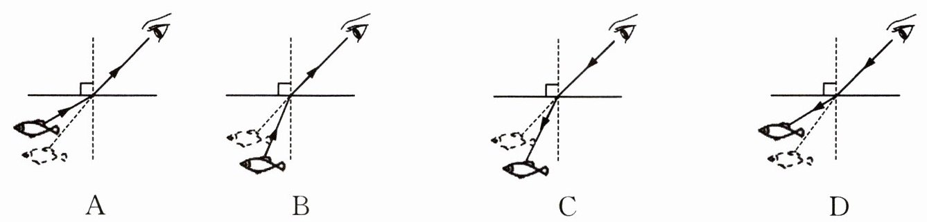 (4) 从岸边看水中的鱼,看到“鱼”的位置与实际位置不同。下列选项中能解释此现象的是 (