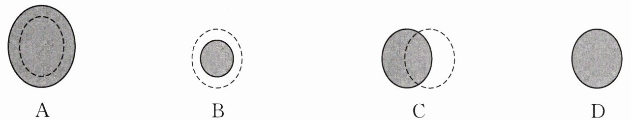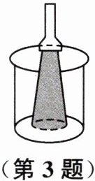 3. 如图所示,手电筒向下照射,发出的光照向空烧杯底,光束投射到烧杯底部形成一个圆形光斑(光斑边界用虚线圈表示)。再向烧杯中注水到一半高度,烧杯底部的光斑(用灰色圆斑表示)会变为下列图中的(