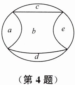 4. 如果把一个玻璃球分割成五块,其截面如图所示,再将这五块玻璃$ a $、$ b $、$ c $、$ d $、$ e $分别放在太阳光下,能使光线发散的是(
