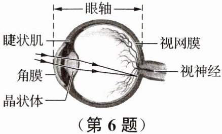 6. 如图所示是人的眼球结构图,正常人的眼睛通过对晶状体的调节,可以看清近处和远处的物体。利用所学的物理知识回答下列问题。