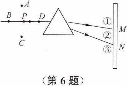 6. 如图所示是一束白光沿BD方向射向三棱镜,在右侧光屏形成了彩色光带MN,下列说法正确的是(