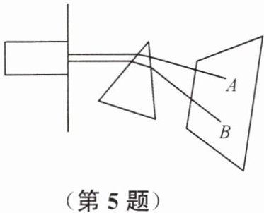 5. 如图所示,将太阳光投射到玻璃三棱镜上,在棱镜后侧光屏上的AB范围内观察到不同颜色的光,则(