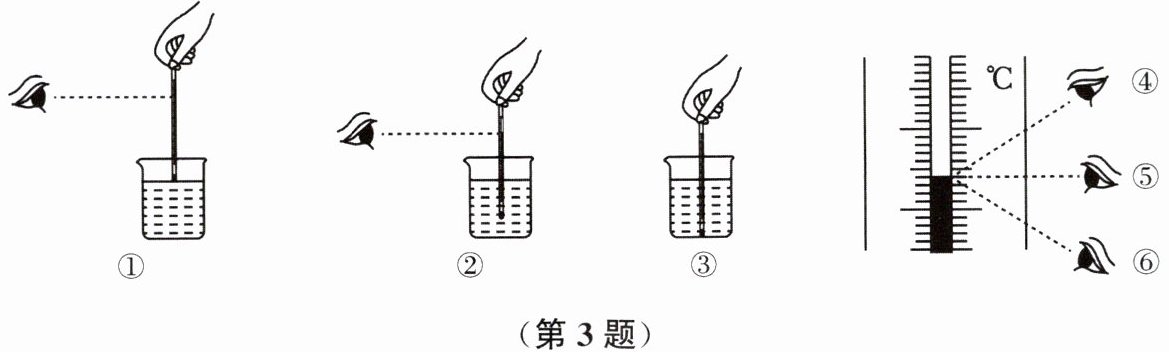 3. 如图所示是使用温度计测量液体温度的操作示意图,其中正确的是 (