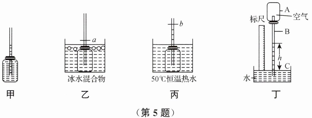 5. 在科技创新节期间,同学们展示自制简易温度计。