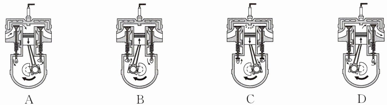 6. 2024 年 4 月 20 日,我国研制的全球首款本体热效率达 53.09%的柴油机正式亮相世界内燃机大会,刷新了柴油机热效率的世界纪录。如图所示内燃机的四个冲程,气缸内气体的内能最小的是(