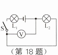 18. 如图所示的电路中,电源电压恒为 $ 6 \, V $,开关闭合后,两灯泡都发光,电压表的示数为 $ 2.4 \, V $,则(
