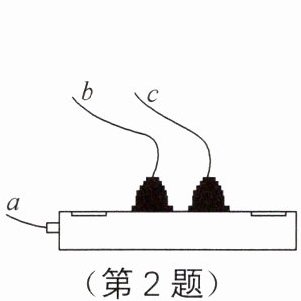 2. 如图所示的插线板中,a接电源,b接台灯,c接电扇,两个用电器