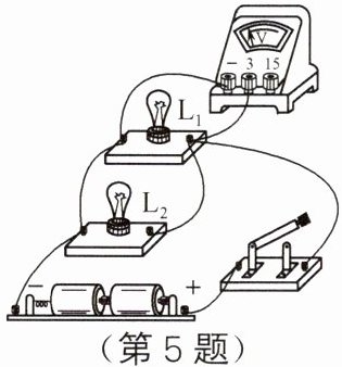 5. 在探究“并联电路的电压特点”实验中,实物连接如图所示,电源电压为3V;为使实验更加合理$,L_1、$$L_2$应该选择规格