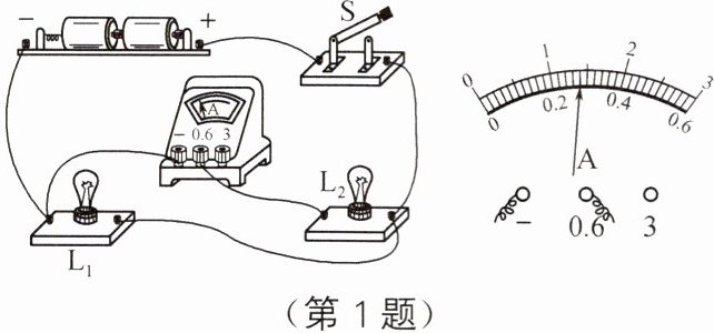 (选填$“L_1”$或$“L_2”)$的电流,电流表读数如图乙所示,读数为0.28