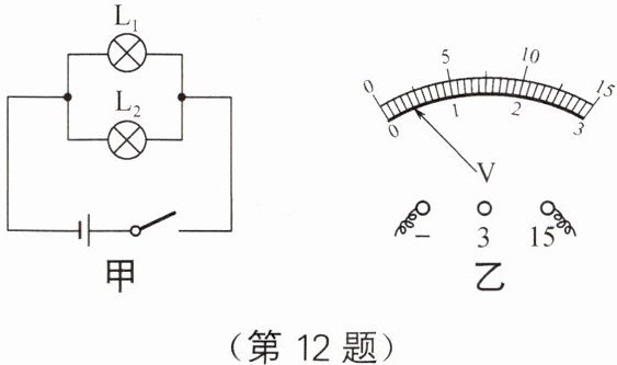 12. 在“探究并联电路中的电压关系”实验中,实验电路如图甲所示。