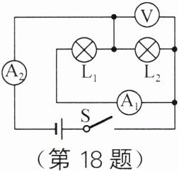 18. 如图所示的电路,电源电压不变,闭合开关S,电流表$A_1、$$A_2$的示数分别为0.2A和0.5A,电压表的示数为3.0V。下列说法不正确的是(