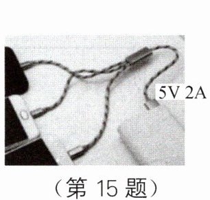 15. 如图所示是使用一根三合一充电线同时给三部手机充电的情景。正在充电的三台手机是