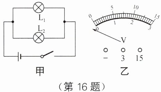 16. 小阳同学设计了如图甲所示电路图探究并联电路的电压规律。当开关闭合时,电压表出现了如图乙所示情况,其原因是电压表